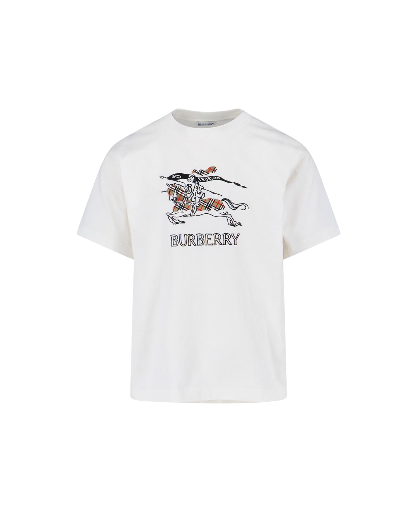Burberry 'ekd' white cotton crew neck t-shirt with short sleeves, 'ekd' logo 'check' pattern on the front, straight hem. Composition: 100% Cotton