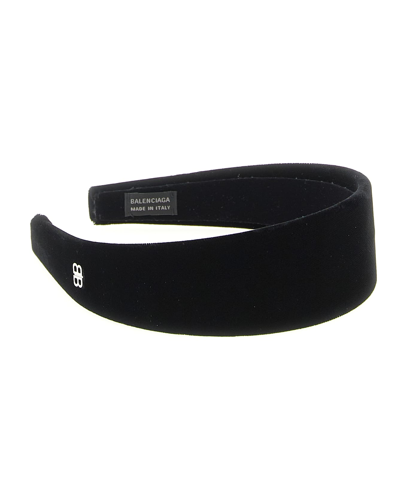 'Holli' smooth velvet headband with side metal logo detail. Composition: 65% viscose 35% cupro