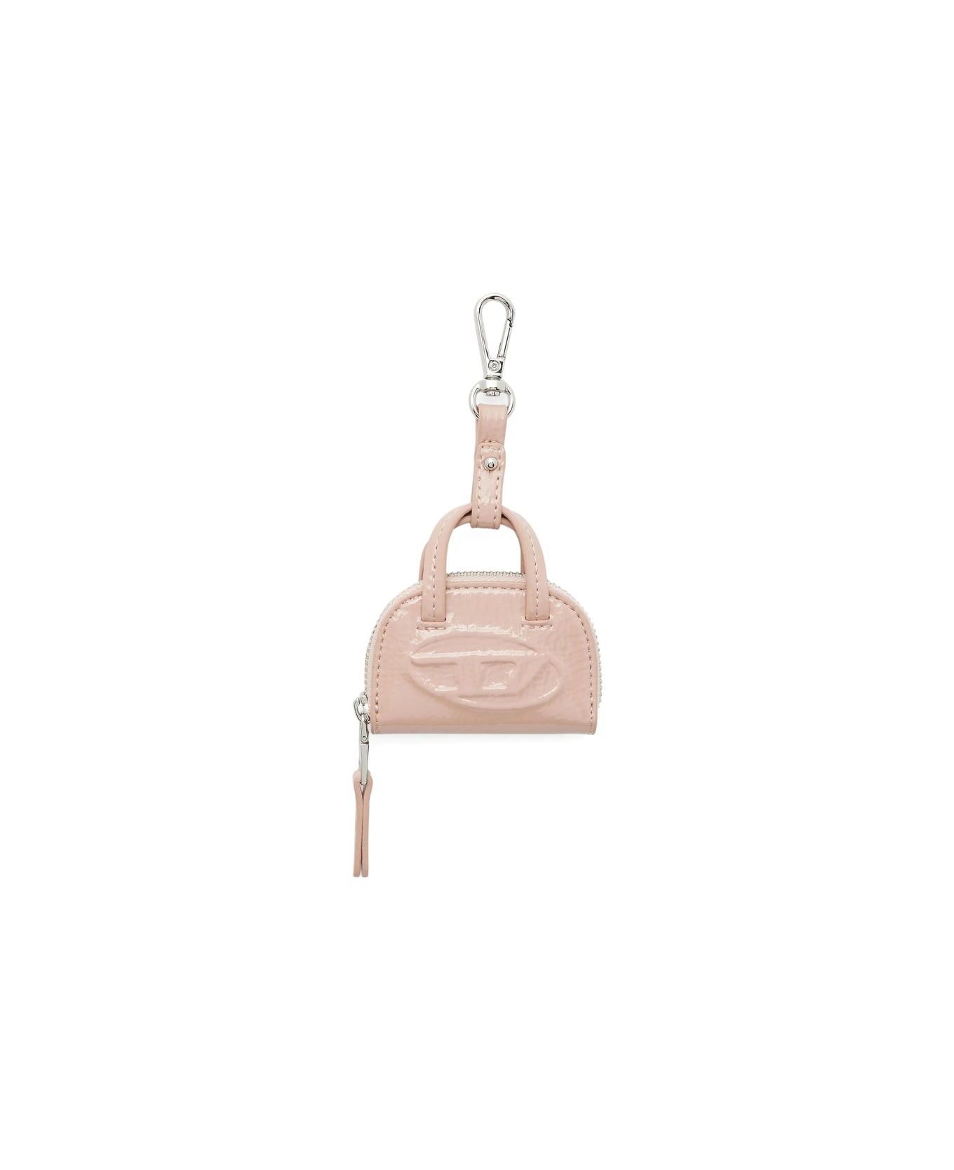light pink embossed logo top handle zip closure silver-tone hardware lobster clasp fastening