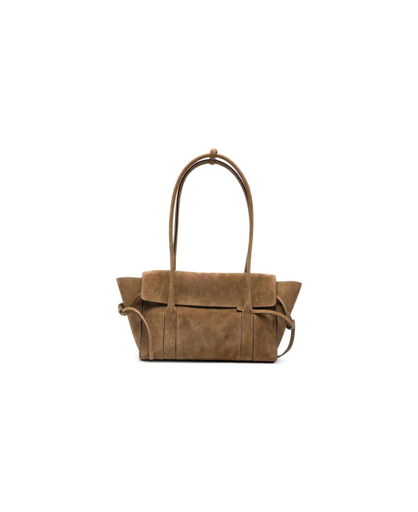 brown top handle flap closure knot detail panelled design internal slip pocket