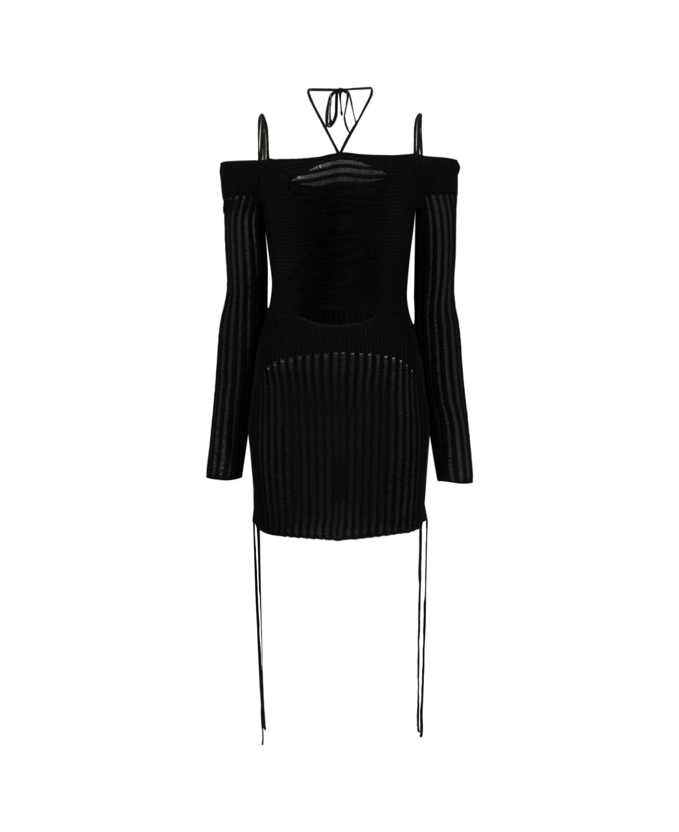 ribbed-knit mini dress from ANDREADAMO featuring black, knitted construction, ribbed knit, cut-out detailing, semi-sheer panels, halterneck tie fastening, square open back, long sleeves, bodycon design, thigh-length and straight hem.