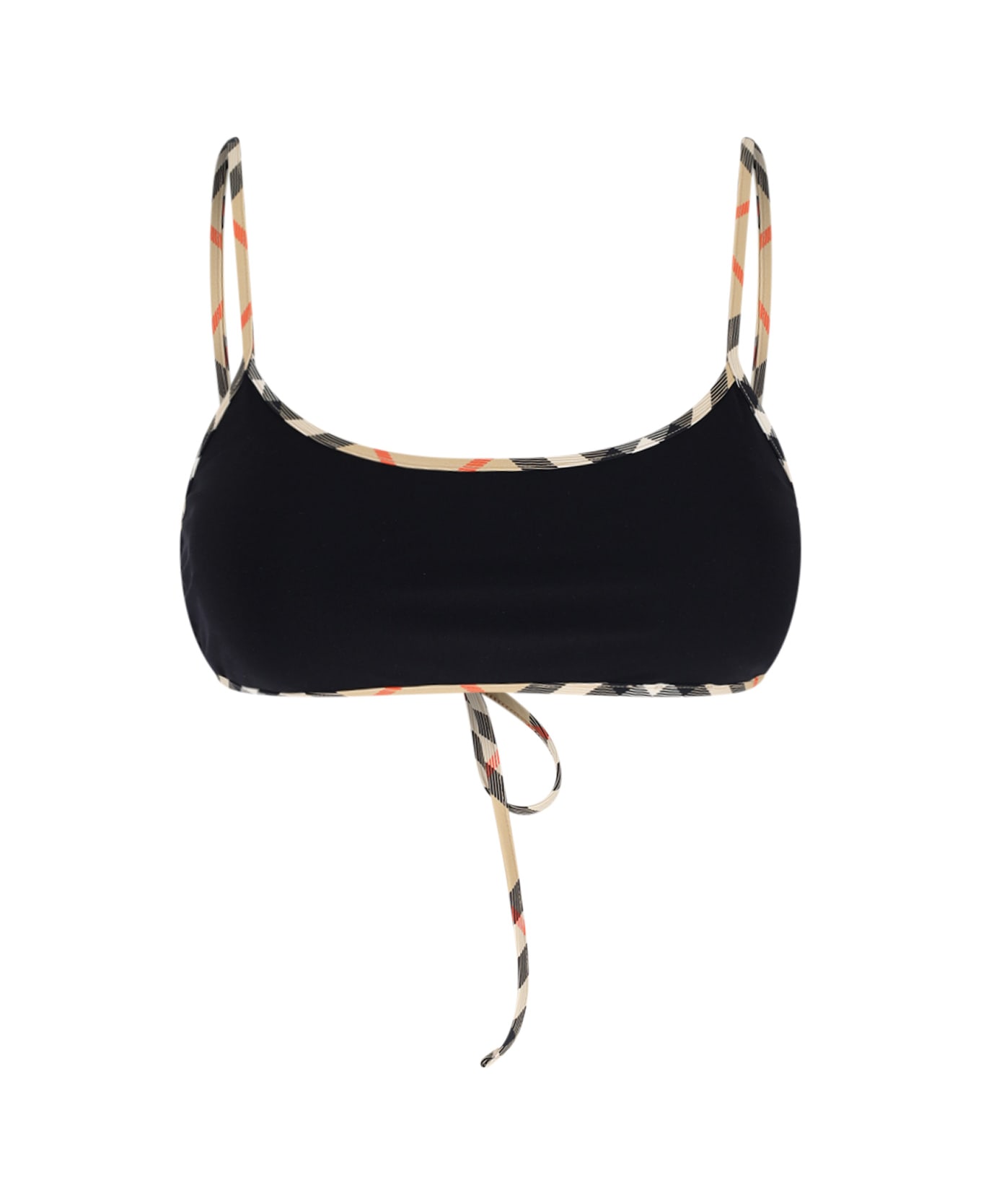 Burberry 'check' swimsuit top in black stretch fabric with thin straps, back ribbon closure, contrast 'check' trim. Composition: 73% Polyamide, 27% Elastane