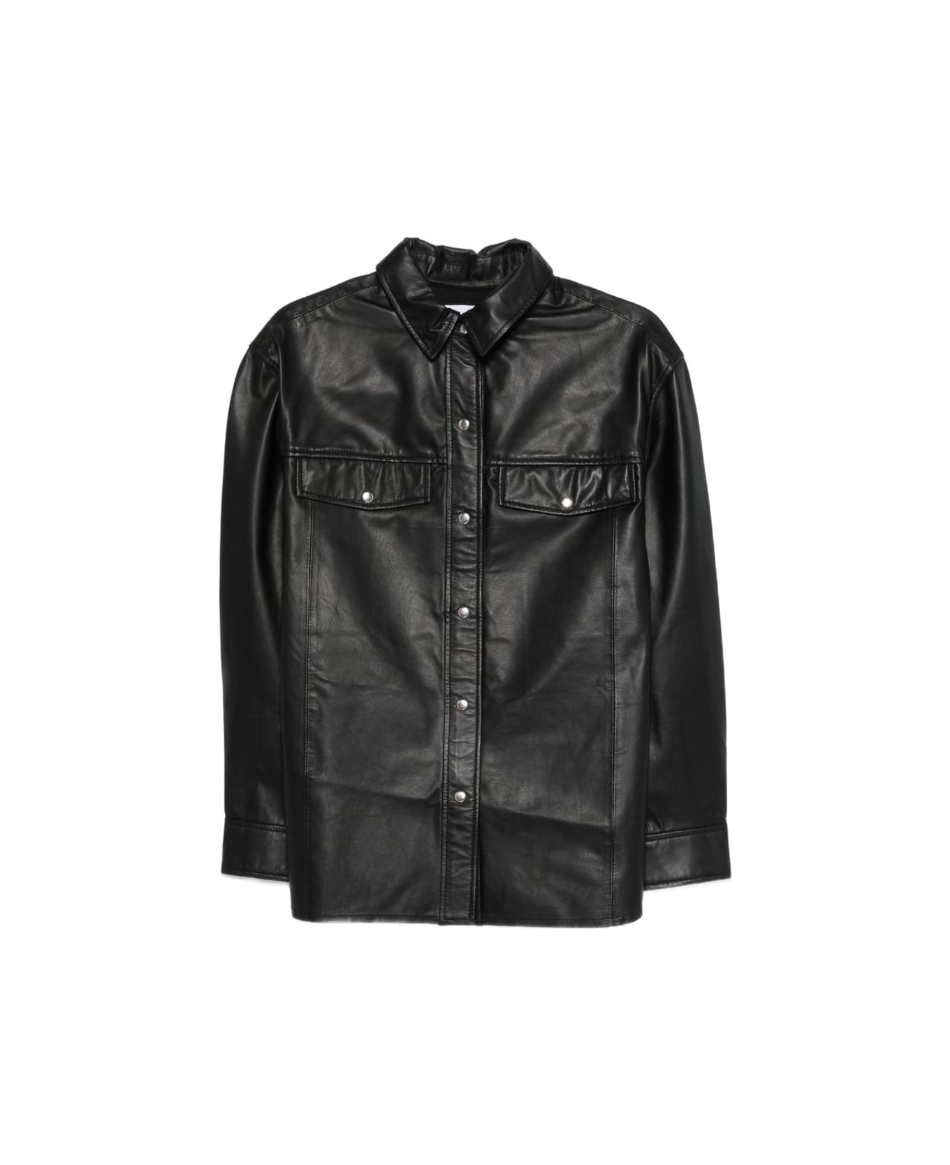 black front press-stud fastening buttoned cuffs two chest pockets long sleeves