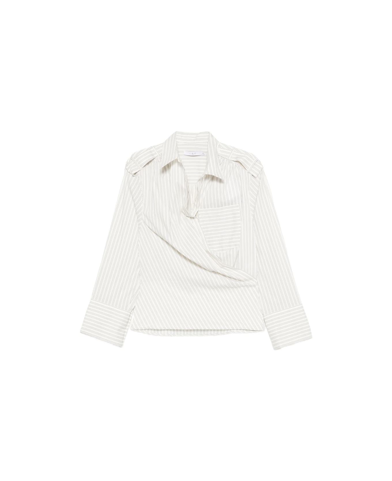 beige striped pattern chest pocket shoulder epaulettes wrap detail long sleeves