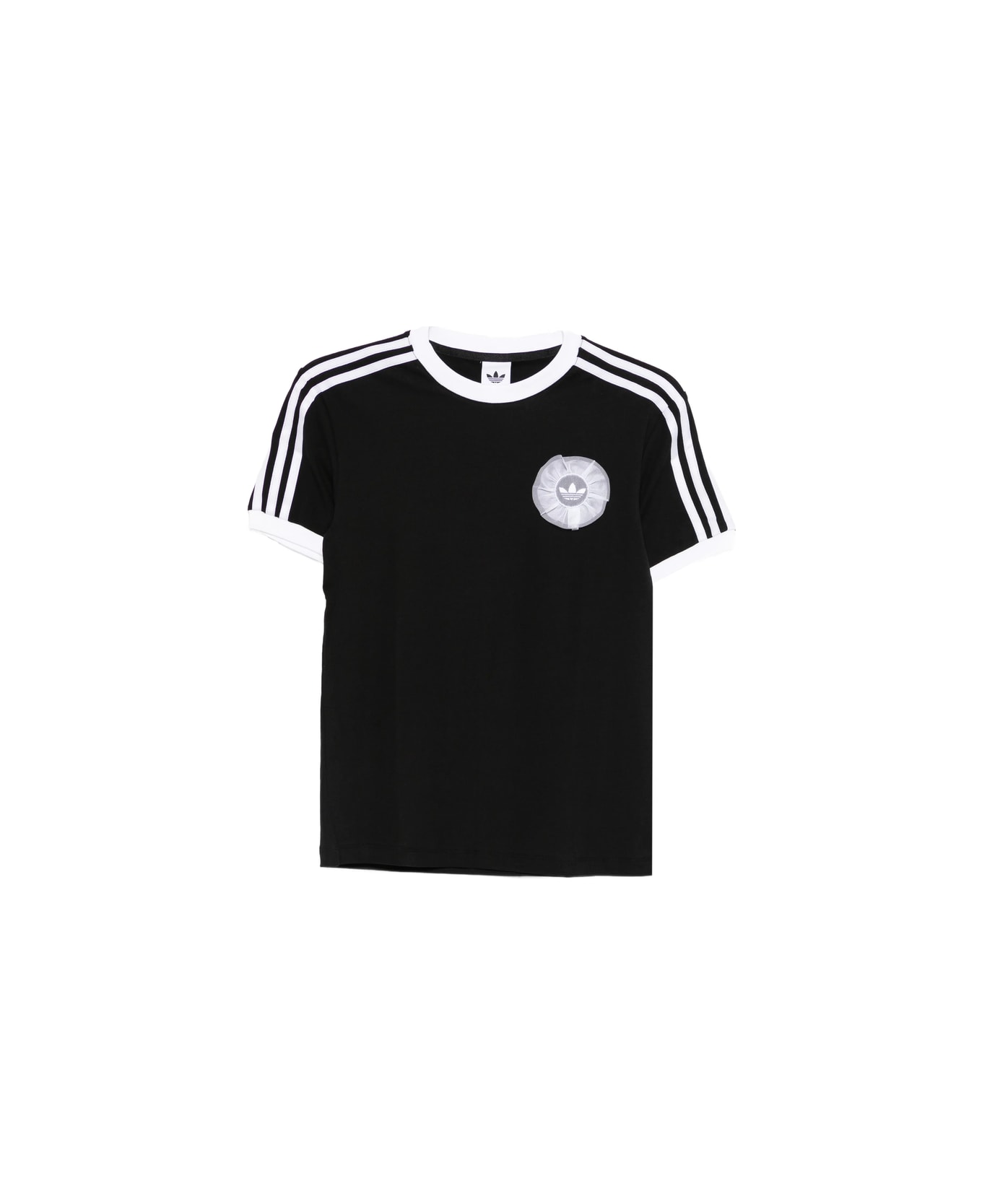 black appliqué detail stripe detail round neck short sleeves ribbed trim